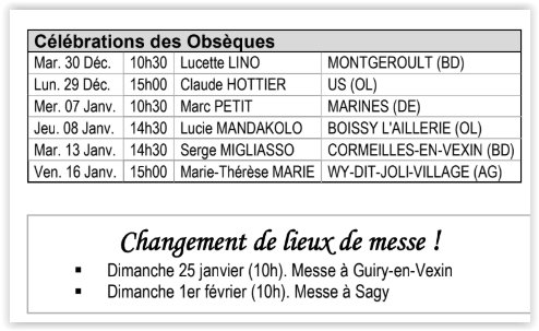 ֍ A Sagy le dimanche 1er février (Messe à 10h). Apéritif et déjeuner à la salle municipale de Sagy. Pour les habitants de Condécourt,